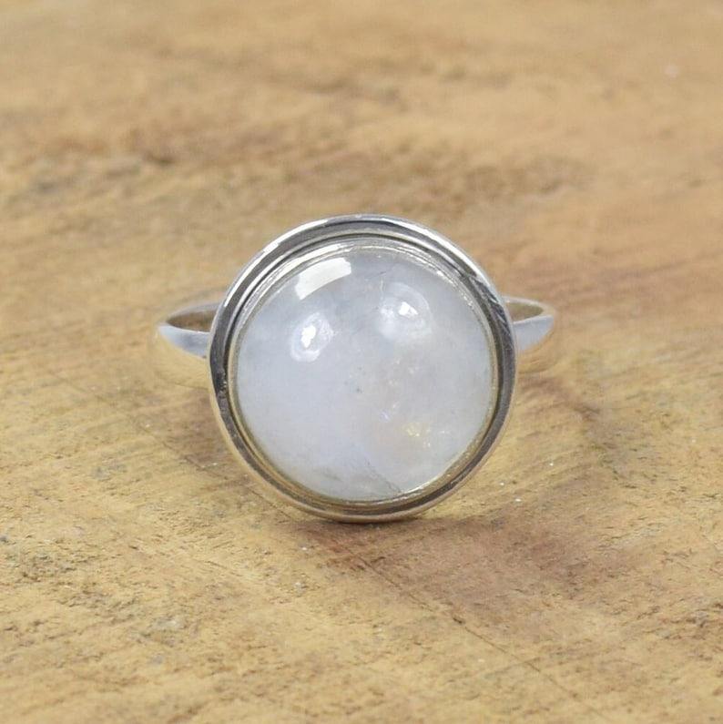 Bague de fiançailles en argent sterling 925 plaqué rhodium avec pierre de lune arc-en-ciel feu bleu naturel sertie à la main