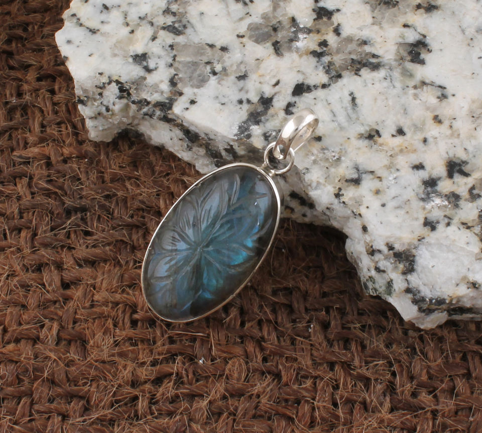 Pendentif en labradorite bleue naturelle sculpté à la main, collier en argent sterling 925, pierre précieuse, bijoux vintage pour femmes, cadeau d'anniversaire