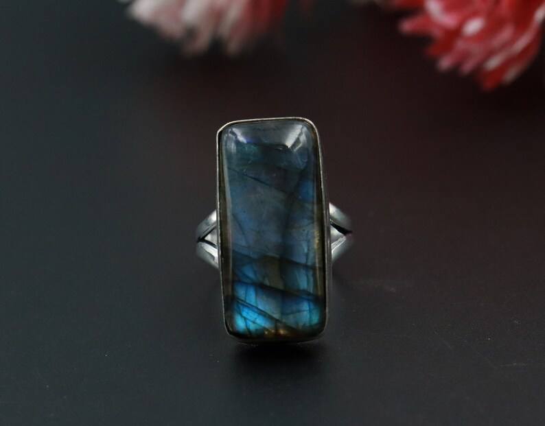 Natural Blue Labradorite Ring Vintage Design