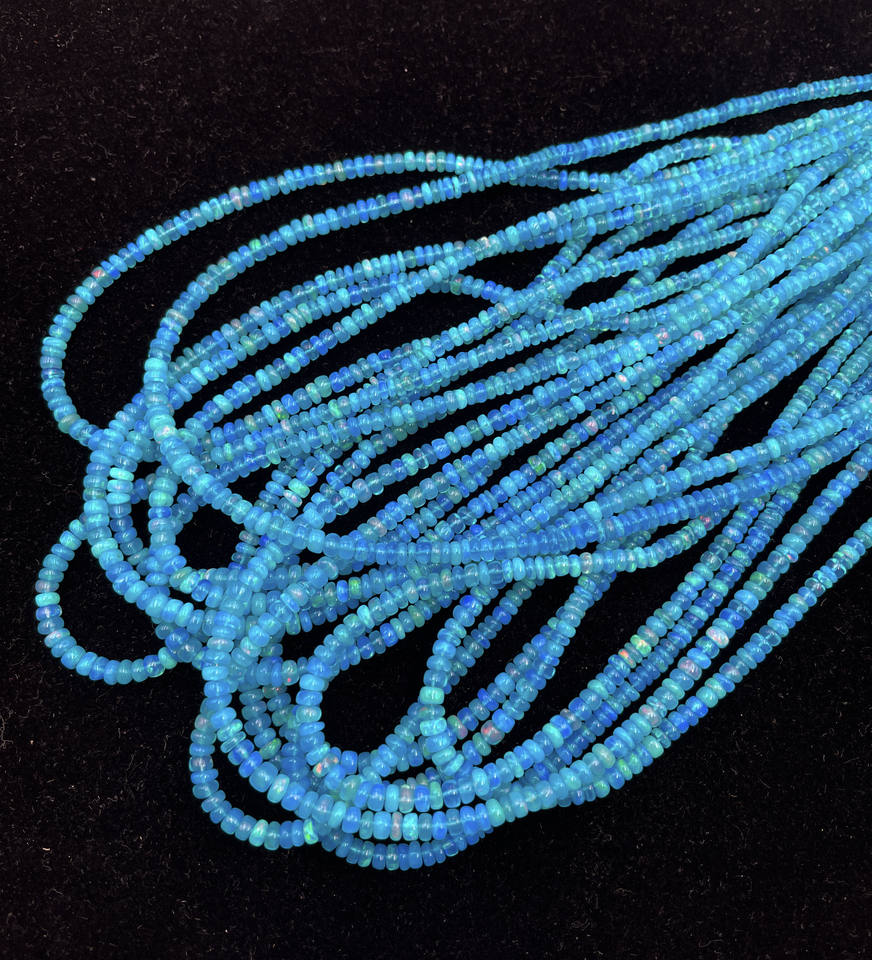 Perles de pierres précieuses d'opale éthiopienne bleue naturelle 16 pouces 3.50-4.50 MM 32 CT brin poli lisse pour la fabrication de bijoux et de cadeaux