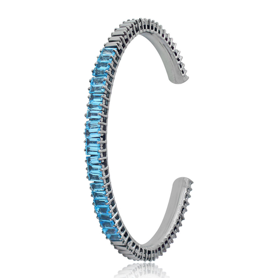Bracelet en pierre de topaze bleue naturelle, manchette simple, Bracelet en argent massif 925, bijoux faits à la main, 45x60 MM, cadeau pour elle