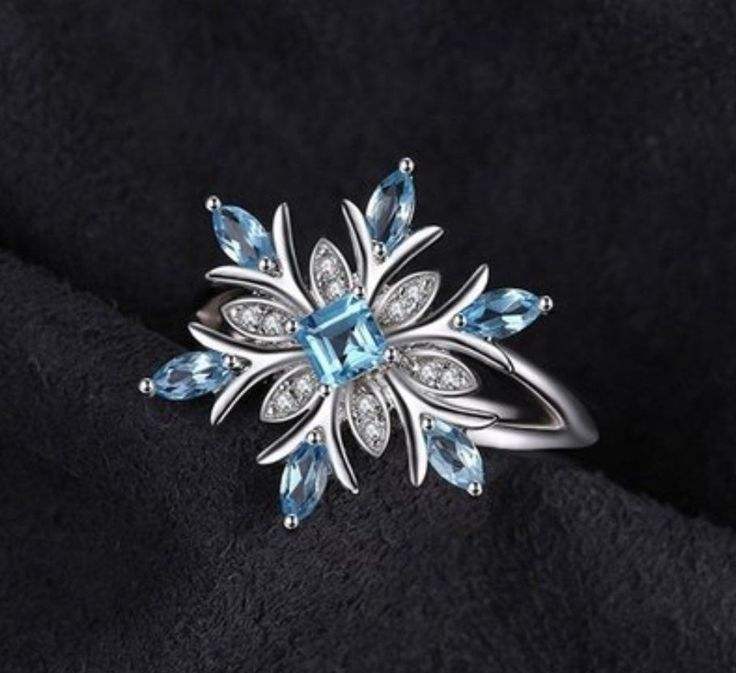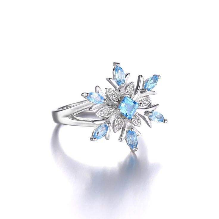 Material:Natural Blue Topaz Ring + Zircon + 925 Sterling Silver