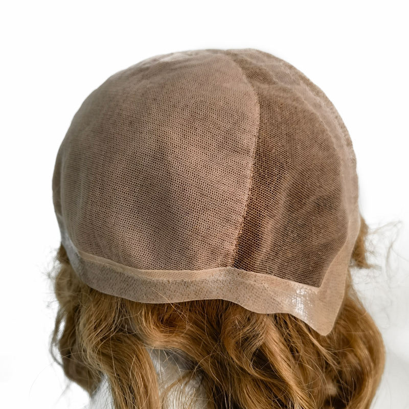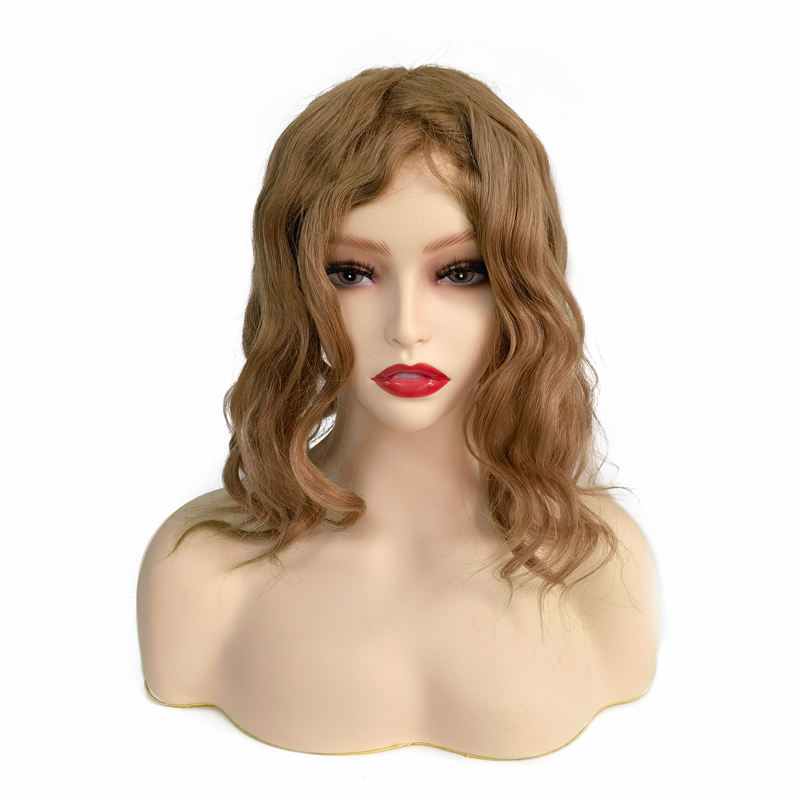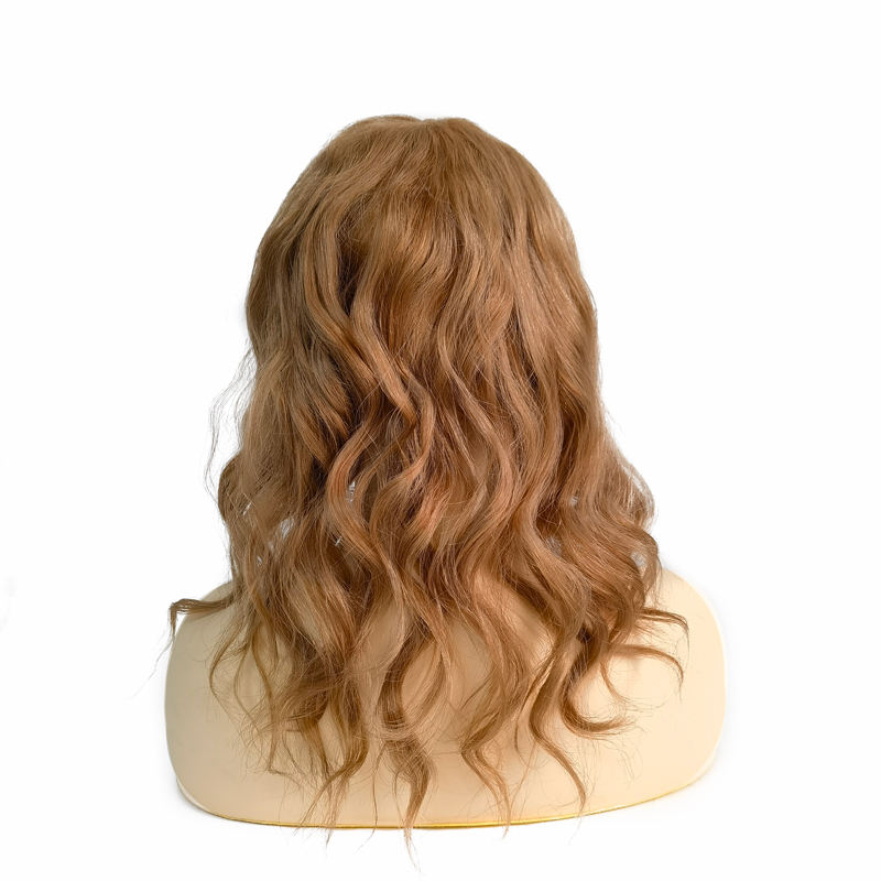 Perruque en cheveux humains vierges de couleur blonde foncée à ondulation naturelle, avec dentelle suisse fine et dessus en soie