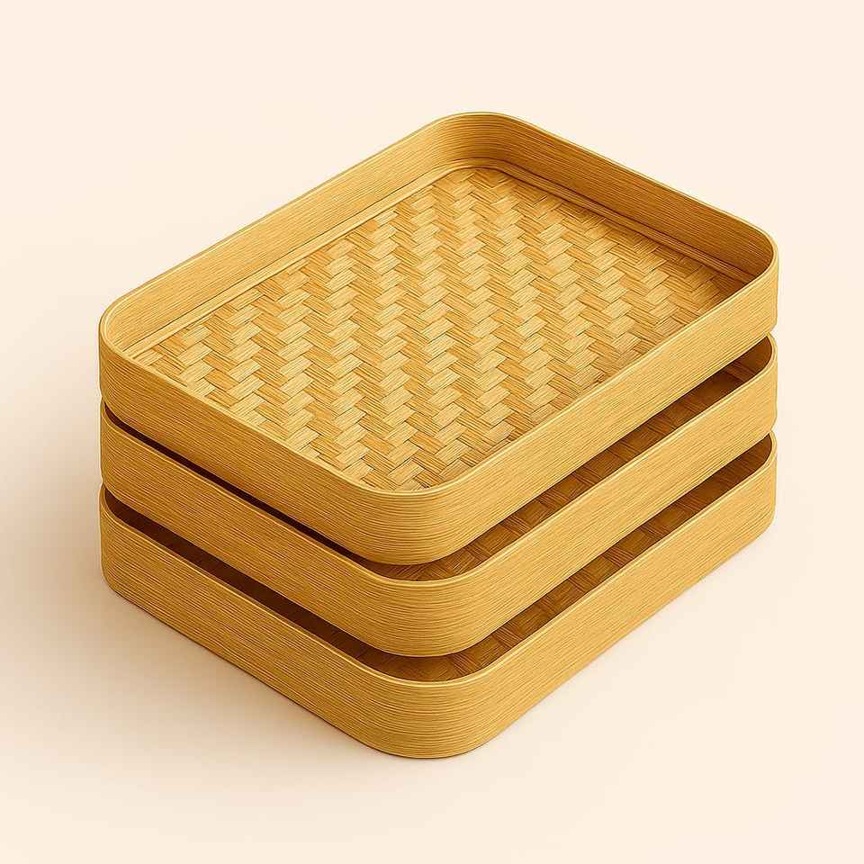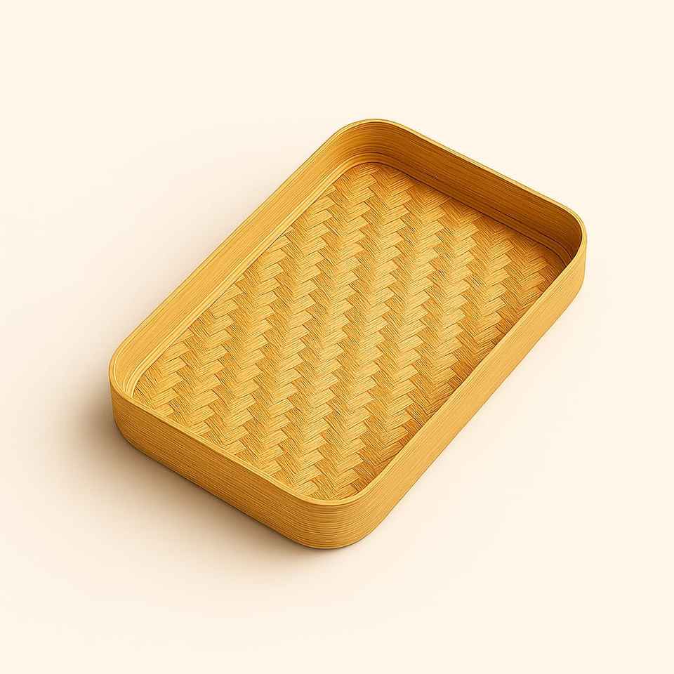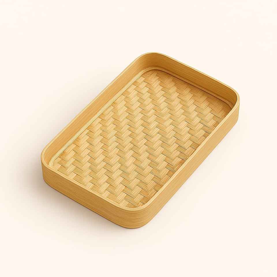 Plateau de service rectangulaire léger en bambou naturel fait main, style bohème, avec rebord surélevé, adapté aux aliments | Plateau de service en chambre pour restaurant/hôtel |