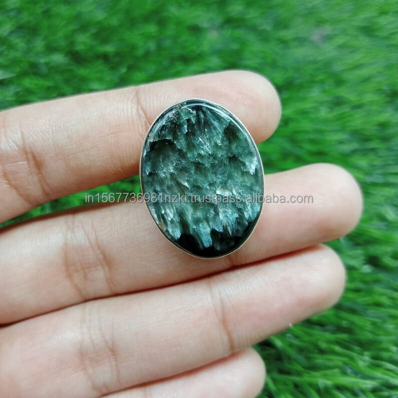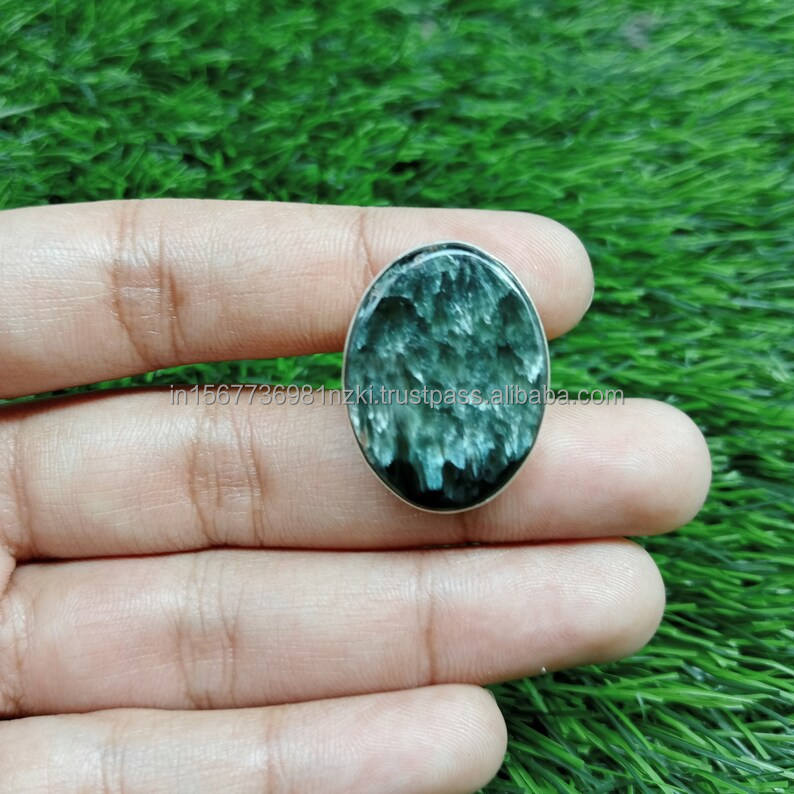 Bague ovale bohème naturelle faite à la main en argent sterling 925 bijoux séraphinite pour femmes idée cadeau de fête d'anniversaire