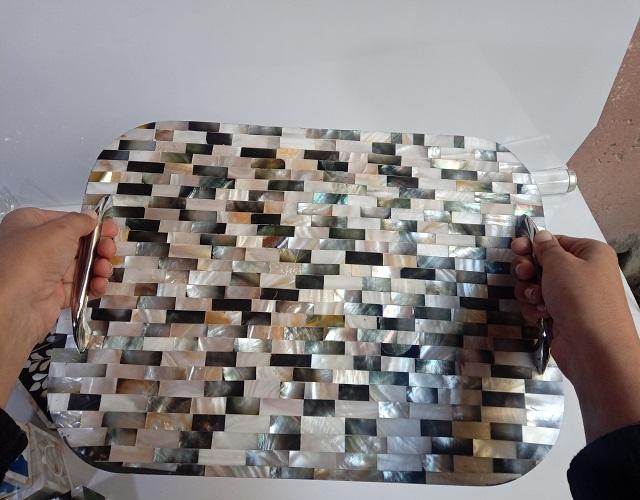 Plateau de service en incrustation d'os naturel fabriqué à la main décor de maison et d'hôtel avec acier au design nacré et résine composée