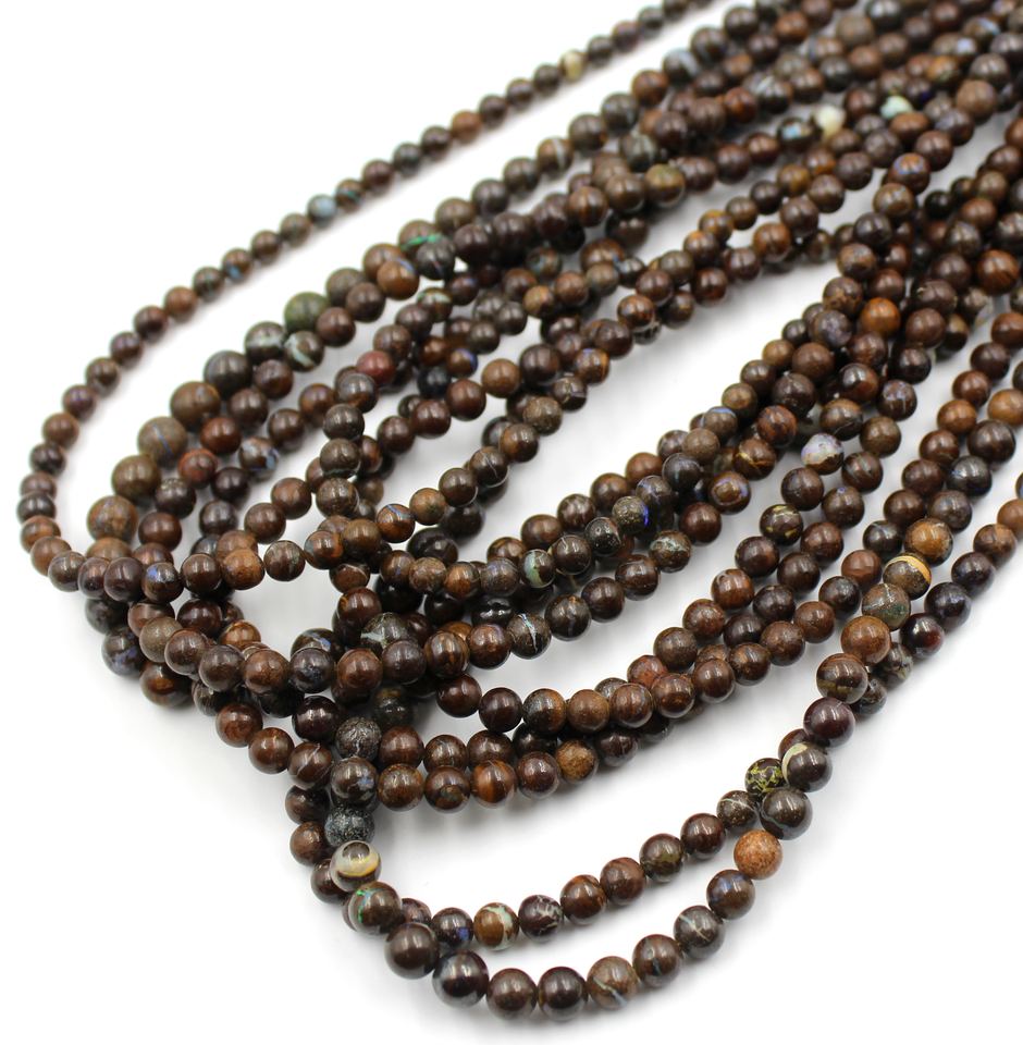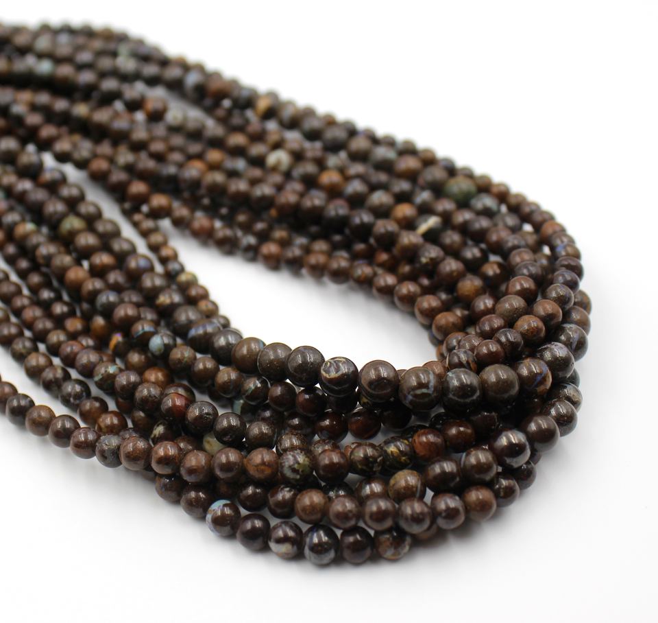 Perles rondes lisses en opale de Boulder naturelle, opale de Boulder australienne, taille des perles 5 mm environ. 14 pouces