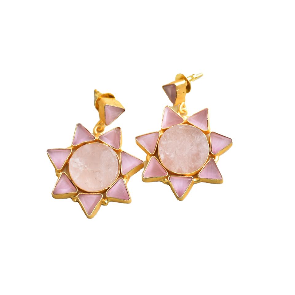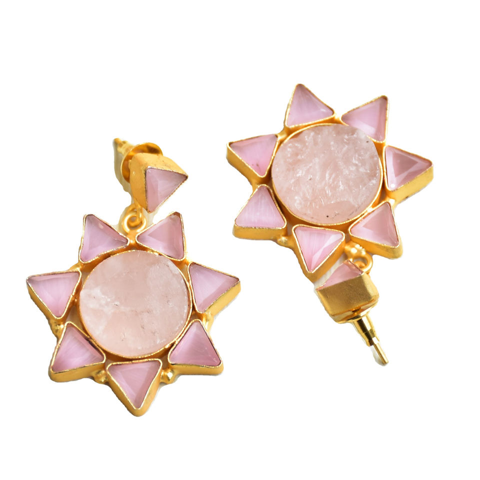 Boucles d'oreilles pendantes en laiton naturel, pierre semi-précieuse naturelle de qualité supérieure, finition laiton satiné, style avant-gardiste, prêt à être expédié en gros