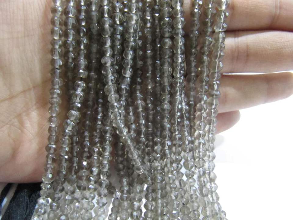 Perles rondes facettées en quartz fumé brun naturel 3-4 mm Meilleure qualité Brin de 13 pouces de long Marque EMINENT JEWEL