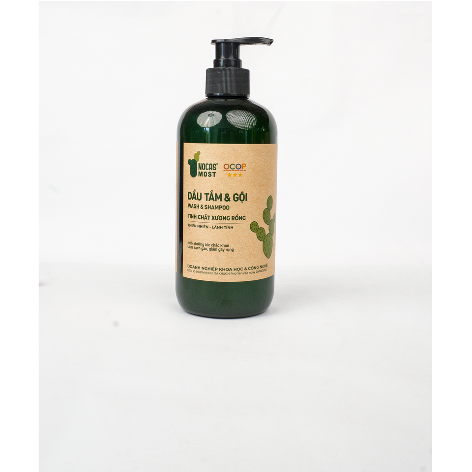 Extrait naturel de cactus Menthe poivrée 2 en 1 Shampooing et gel douche à base de plantes pour tous types de peau Nettoyage en profondeur 500ml Vietnam