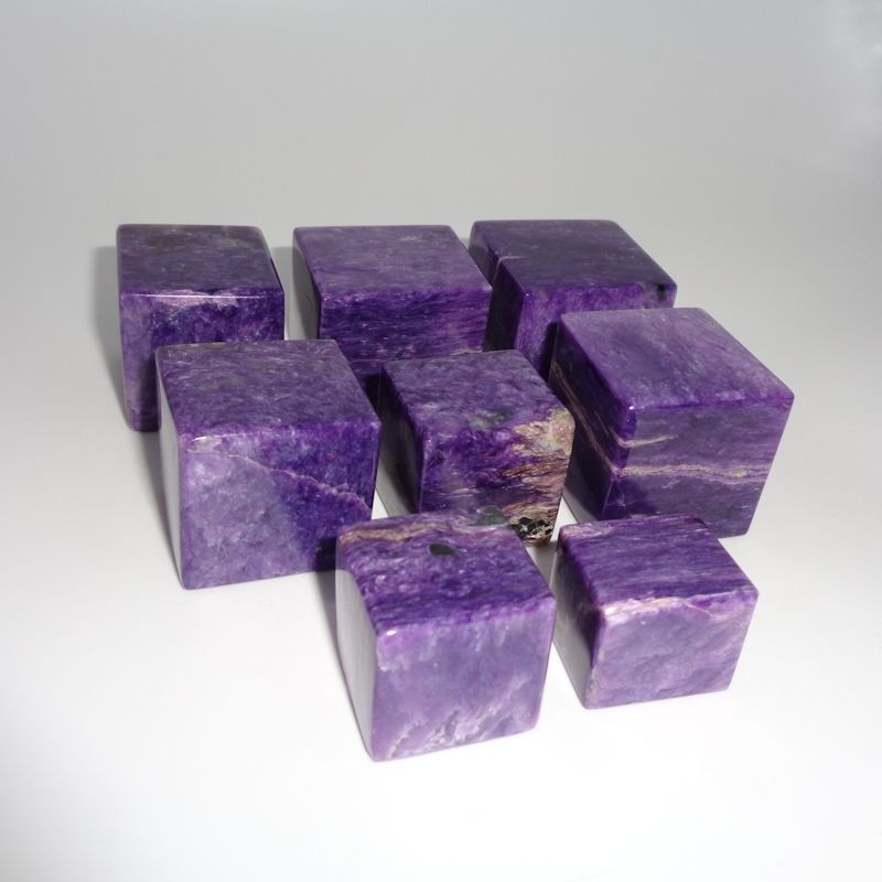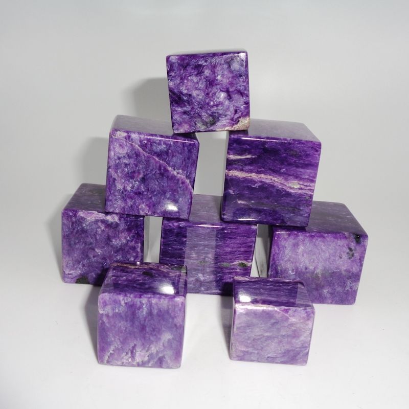 Cube de cristal de Charoïte naturelle, sculpture plate, poli à la main, pierre précieuse violette pour la méditation, le Reiki et l'énergie des chakras