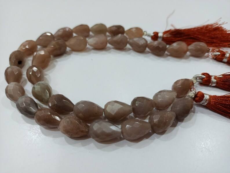 Chocolat naturel pierre de lune larme forme goutte 7x12mm Briolette perles à facettes brin 8 pouces de long perles de pierre de lune