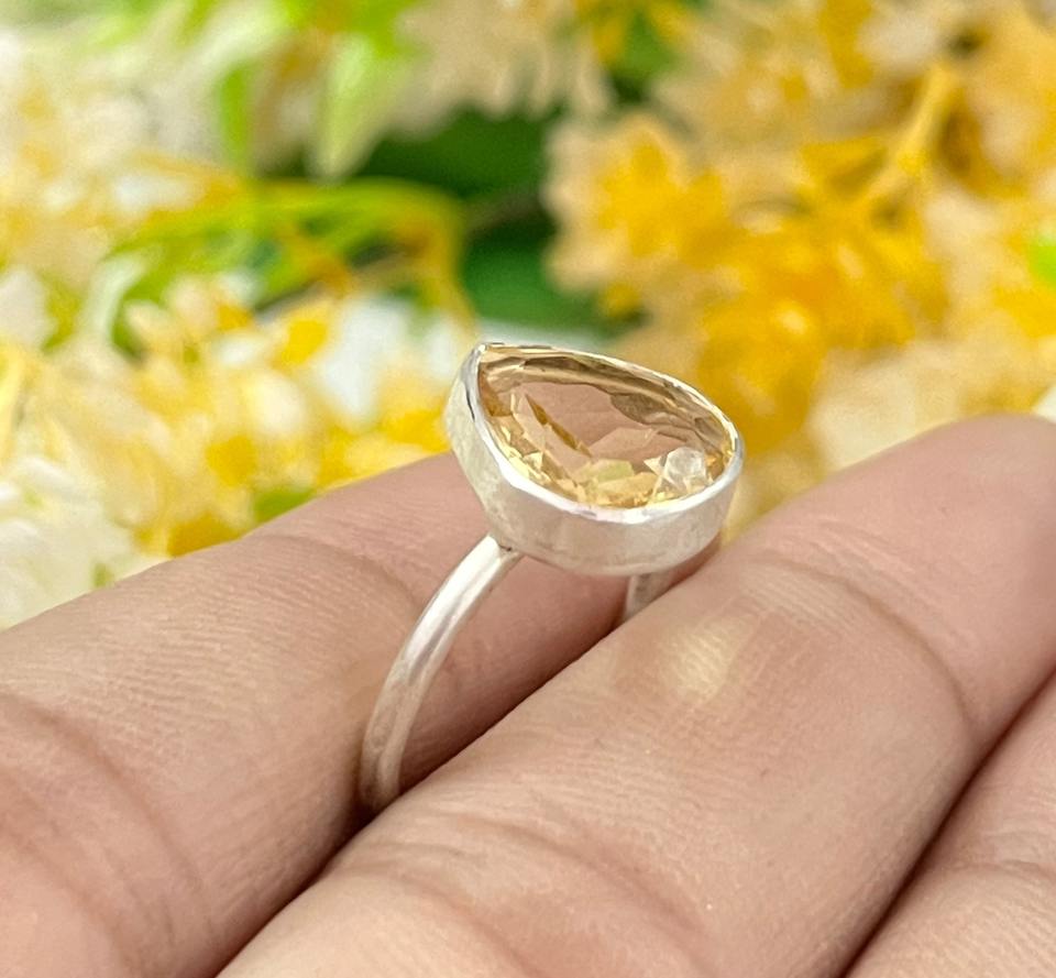 Bague en argent Citrine naturelle Bague en argent avec pierres précieuses Citrine Bague bohème en argent faite à la main pour femme