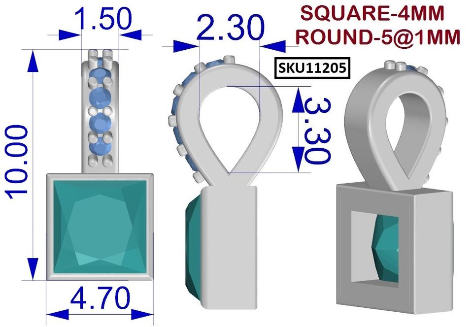 Stone Size:Square L- 4 MM, Round Zircon- 1 MM