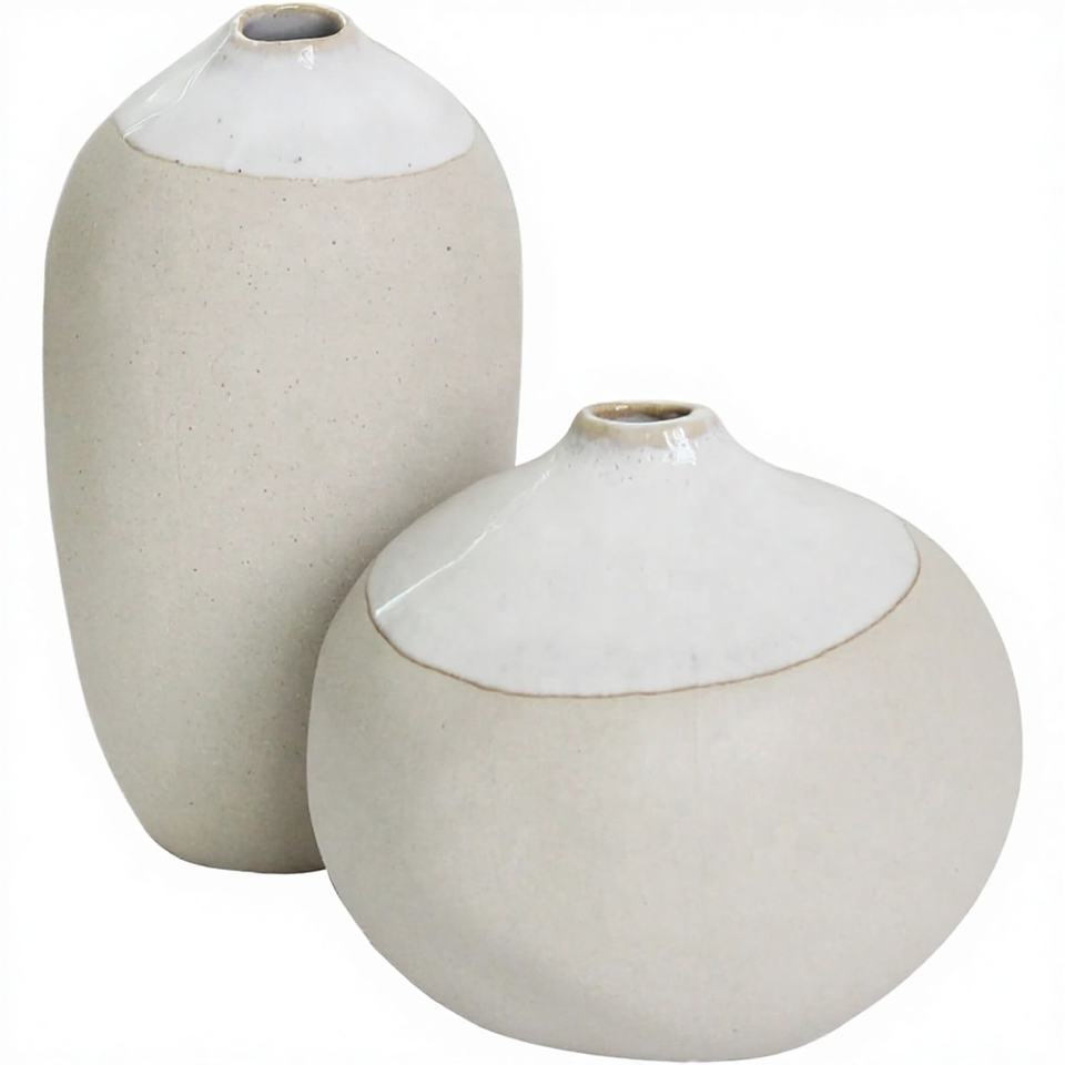 Vases à fleurs contemporains en céramique d'argile naturelle, faits à la main, avec glaçure réactive blanche pour la décoration intérieure