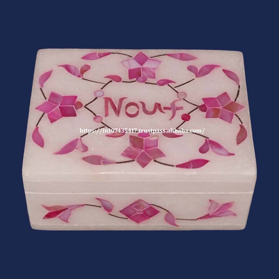 Boîte en marbre incrusté de nacre polie au design naturel et moderne de qualité supérieure pour le rangement des bijoux, article cadeau
