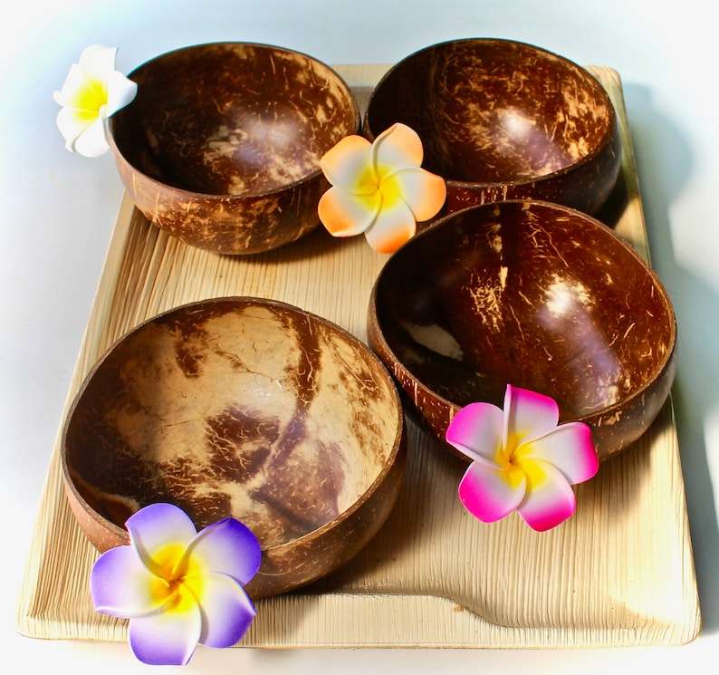 Bol en noix de coco naturel fait à la main, écologique, en coque de noix de coco, pour servir des salades, des smoothies, des fruits, du riz et pour une utilisation en restauration