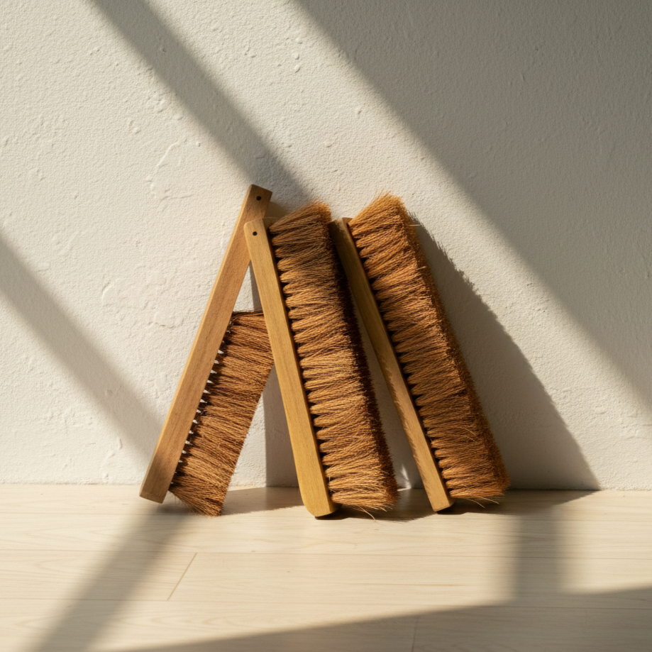 Mini brosse exfoliante en fibre de coco naturelle avec manche en bois, outil de nettoyage ménager écologique