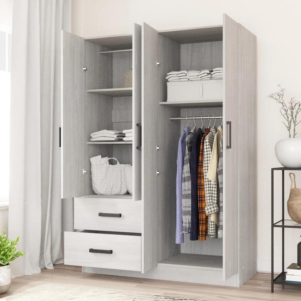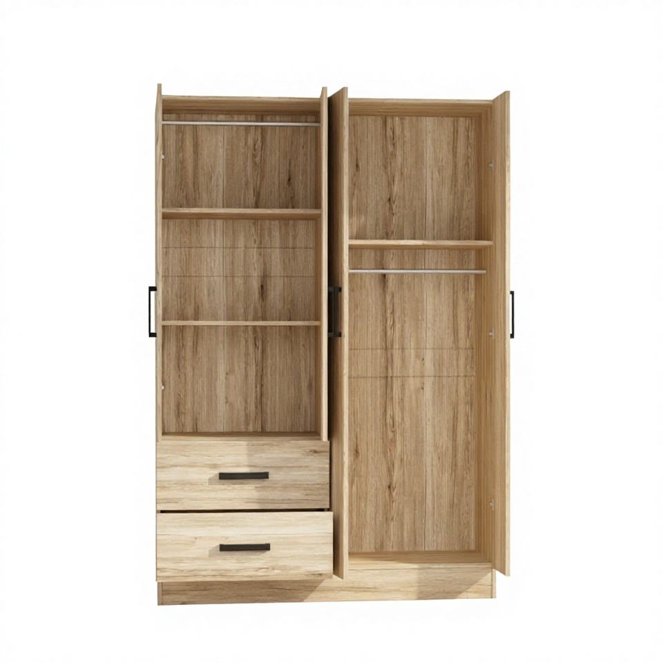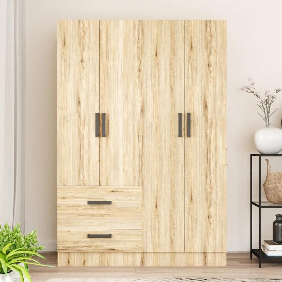 Armoire autoportante sur mesure couleur naturelle à 4 portes avec tringle de suspension, étagères et 2 tiroirs