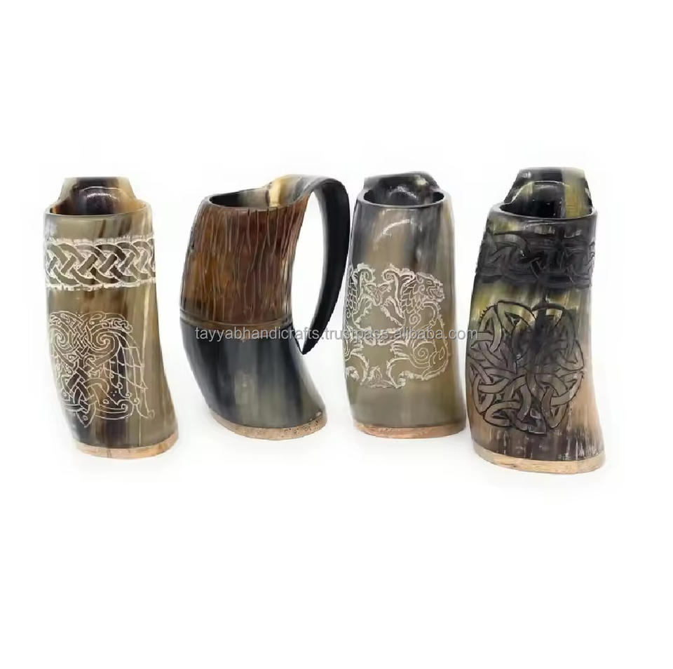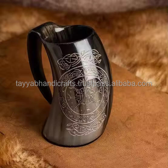 Mug en corne fait à la main de couleur naturelle, mug en corne de la meilleure qualité, mug à bière en provenance d'Inde
