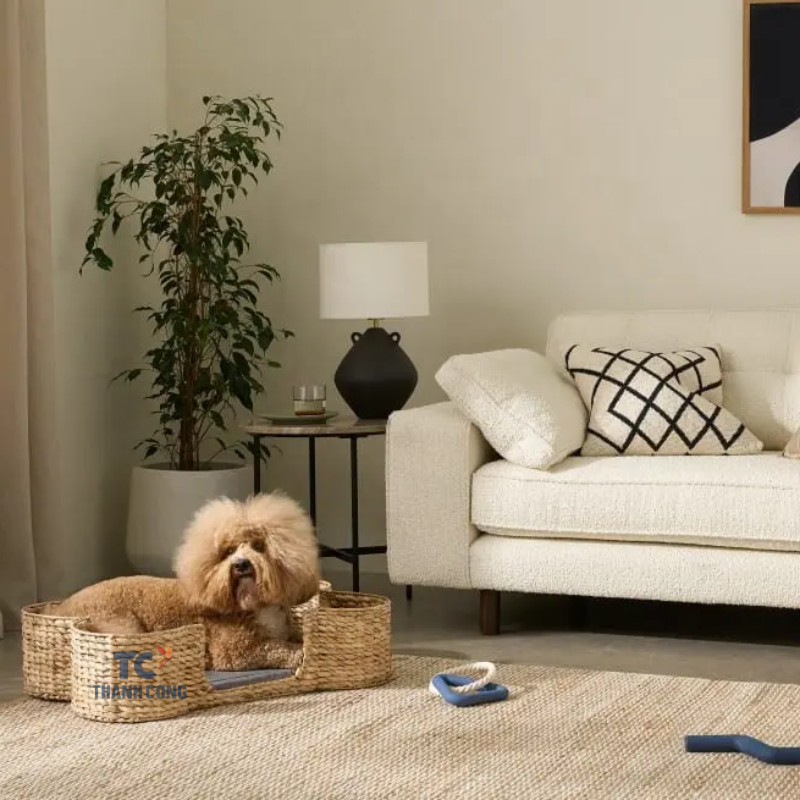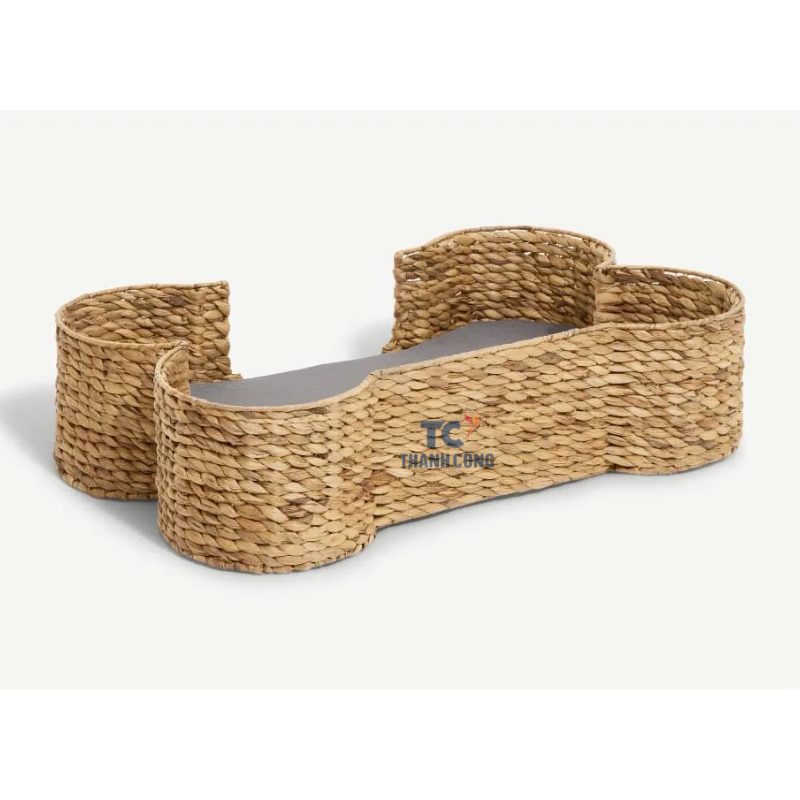 Lit en forme d'os pour animaux de compagnie en jacinthe d'eau de couleur naturelle pour chat et chien fabriqué au Vietnam
