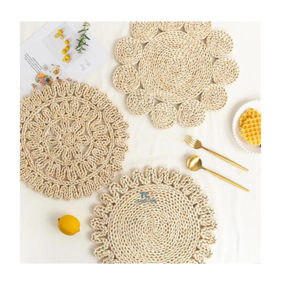 Napperon en rotin de couleur naturelle Assiettes de présentation creuses en osier pour les vacances Tapis de table de cuisine de Noël Napperons tissés ronds