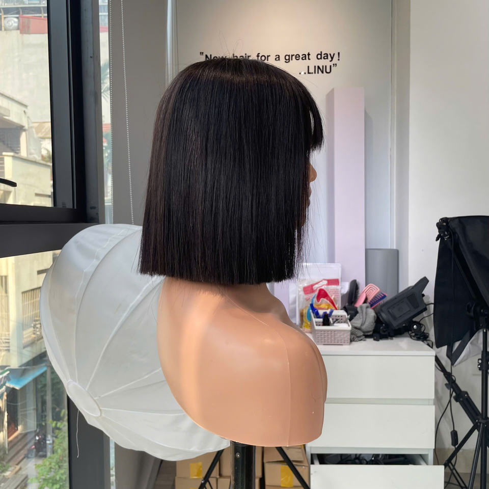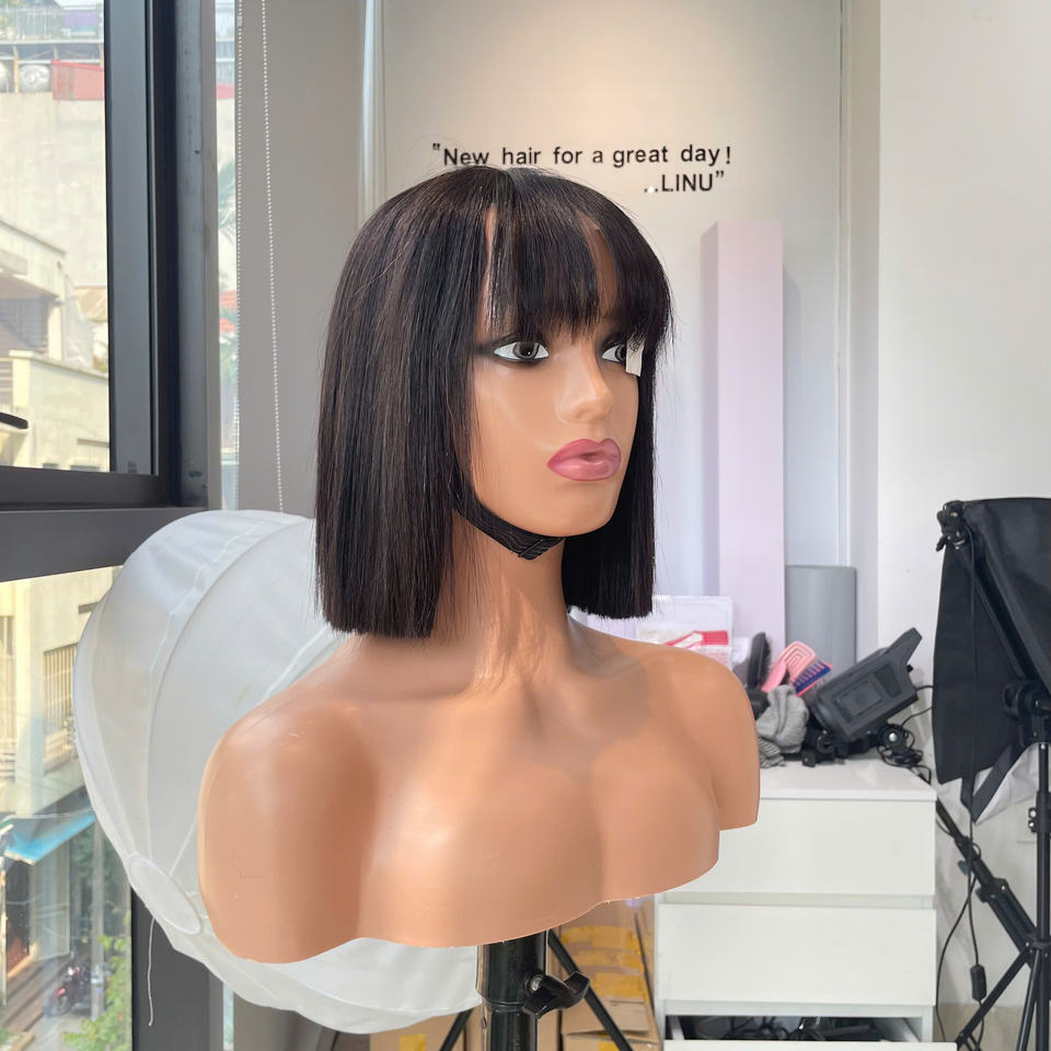 Perruque Courte à Frange Couleur Naturelle Cheveux Humains Vierges Vietnamiens Pour Femmes Prix Usine Vente en Gros Cheveux Soyeux Ultra-Lisses Tendance