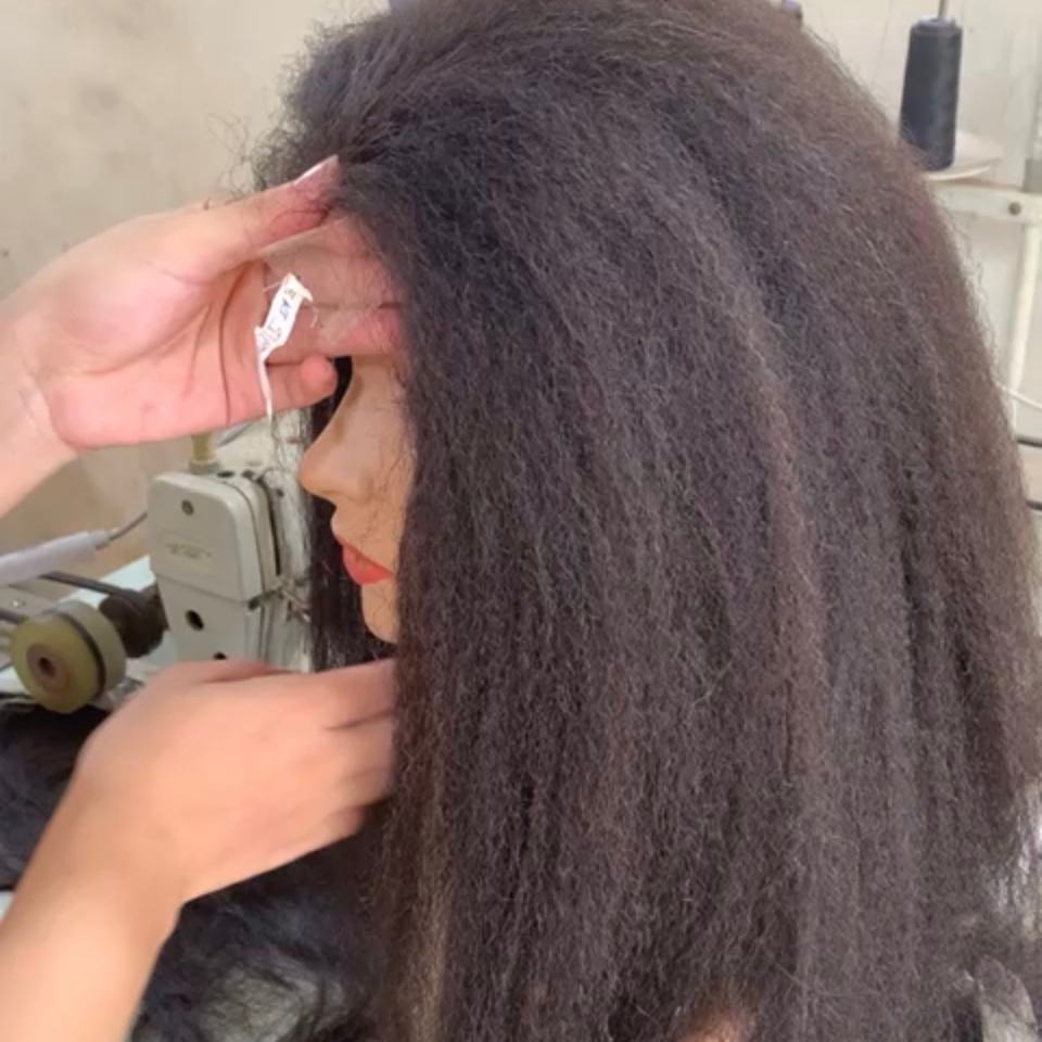 Couleur naturelle Perruque droite crépue vietnamienne Perruque frontale Cheveux vierges bruts pour femmes noires de Cloudyhair