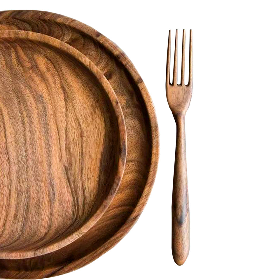 High Quality Mango Wood Charger Plates Brownish Natural Color Kitchenware Dinnerware Food Serving Wooden Charger Plates Top