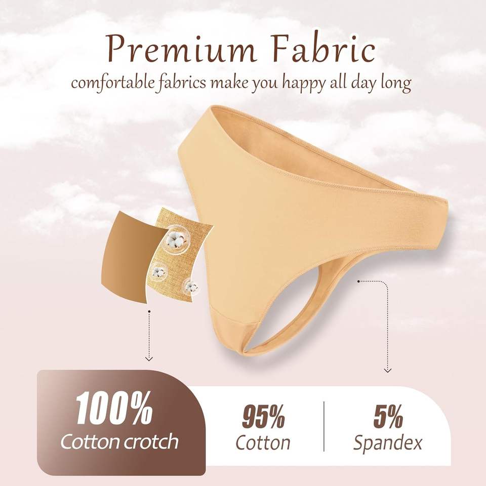 Natural Comfort Women's Low-Rise Solid Thong Underwear Panties Soft Fabric Breathable Gentle Stretch Secure Hold Full Coverage