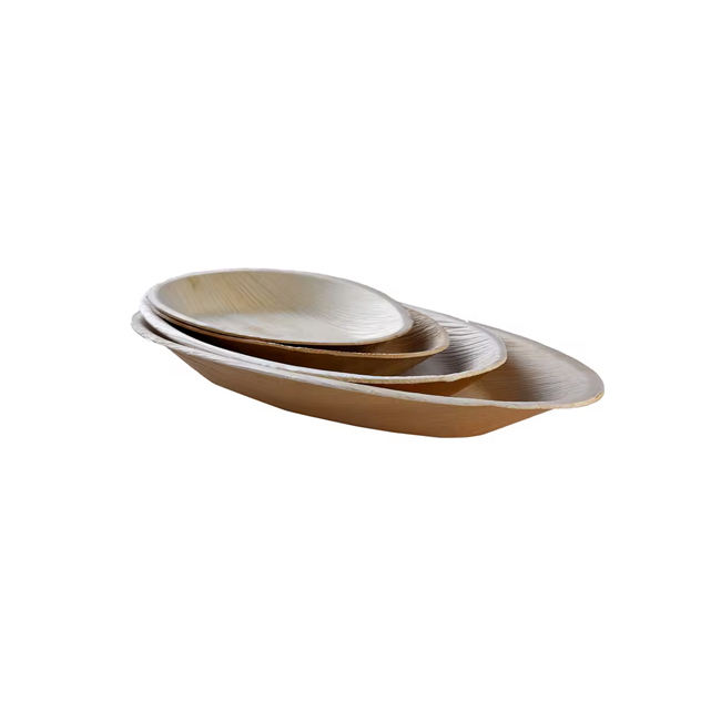Assiettes jetables compostables naturelles 31X18 cm plateaux ronds à œufs en feuilles de palmier pour le service des aliments dans les restaurants fêtes de mariage