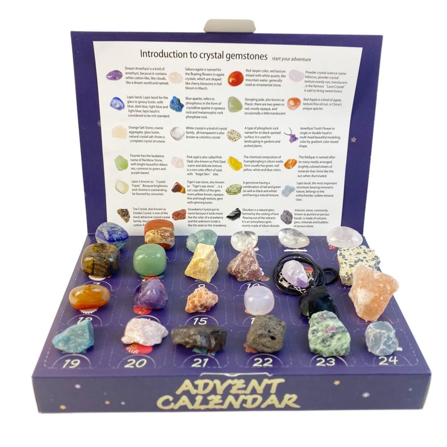 Coffret Cadeau pour Enfants de Pierres Roulées Brutes en Cristal Naturel, 24 Grilles, Standard Mine, Boîte Mystère, Décoration, Jouet Éducatif Chakra