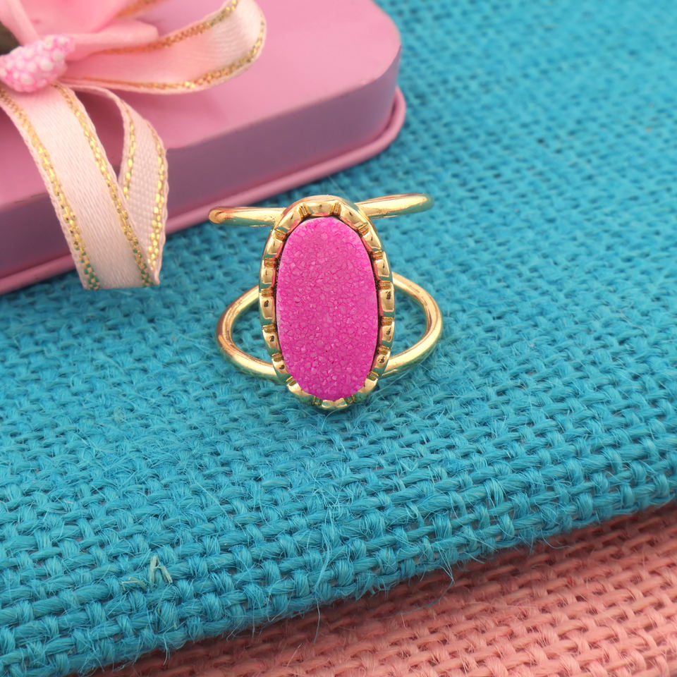 Natural Crystal Sugar Agate Druzy Adjustable Ring Handmade Brass Gold Plating Prong Set Oval Shape Druzy Ring Gift For Unisex