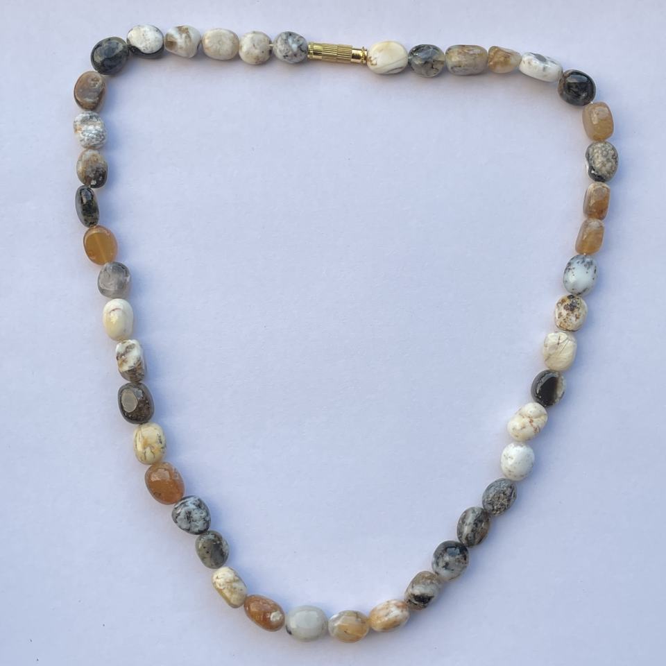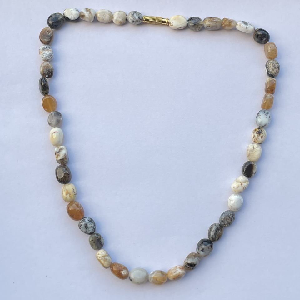 Product Name:Natural Dendrite Opal Stone Smooth Oval Gemstone Beads Necklace