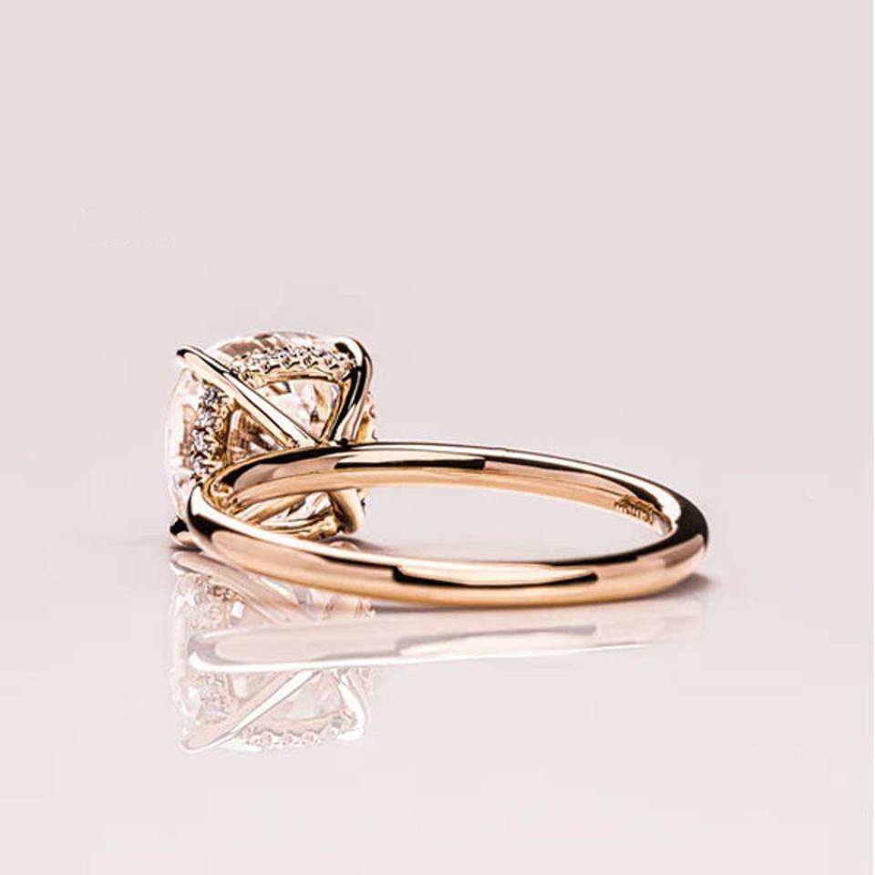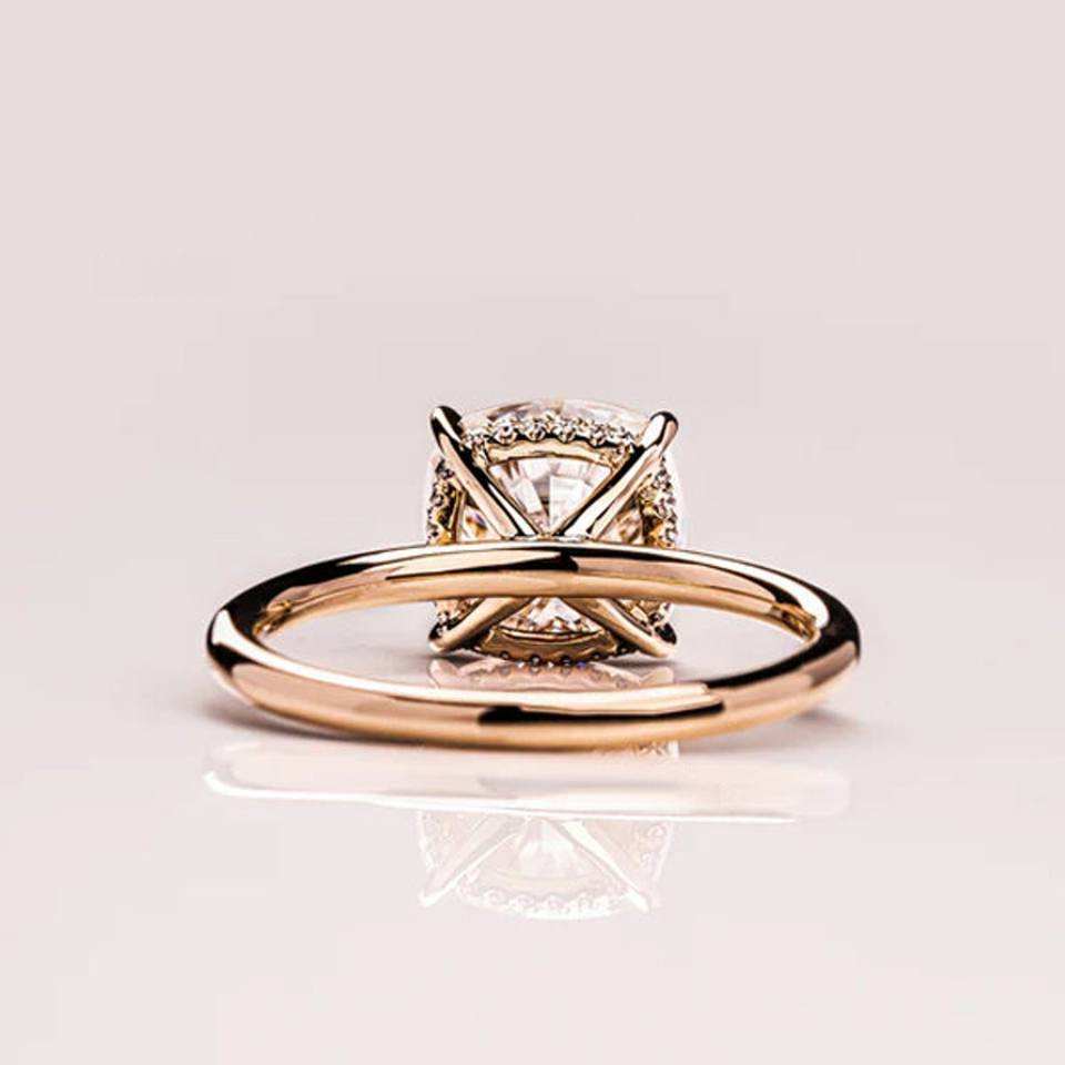 Bague Solitaire en Or Massif 14 carats avec Diamant Naturel, Taille Coussin, Halo Caché, Sertissage à Griffes, Mignonne et Classique, pour Fiançailles, Mariage, Fête, 1-3 carats