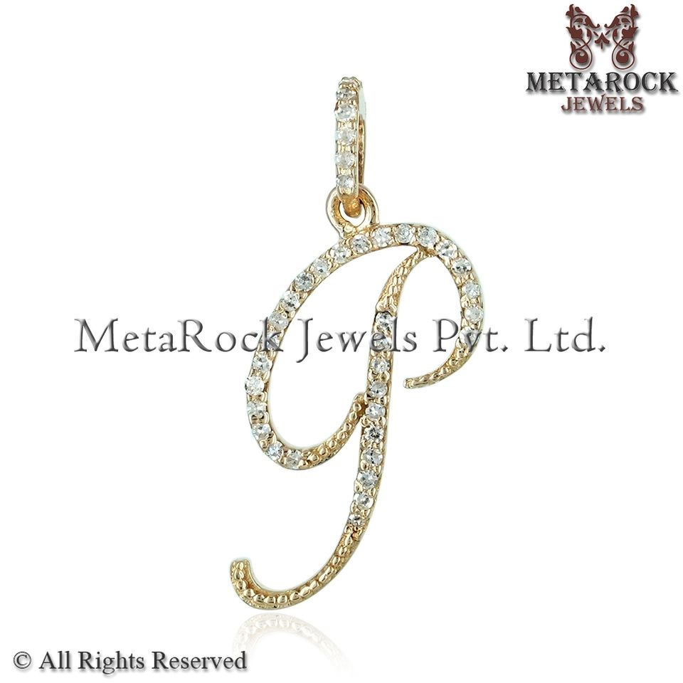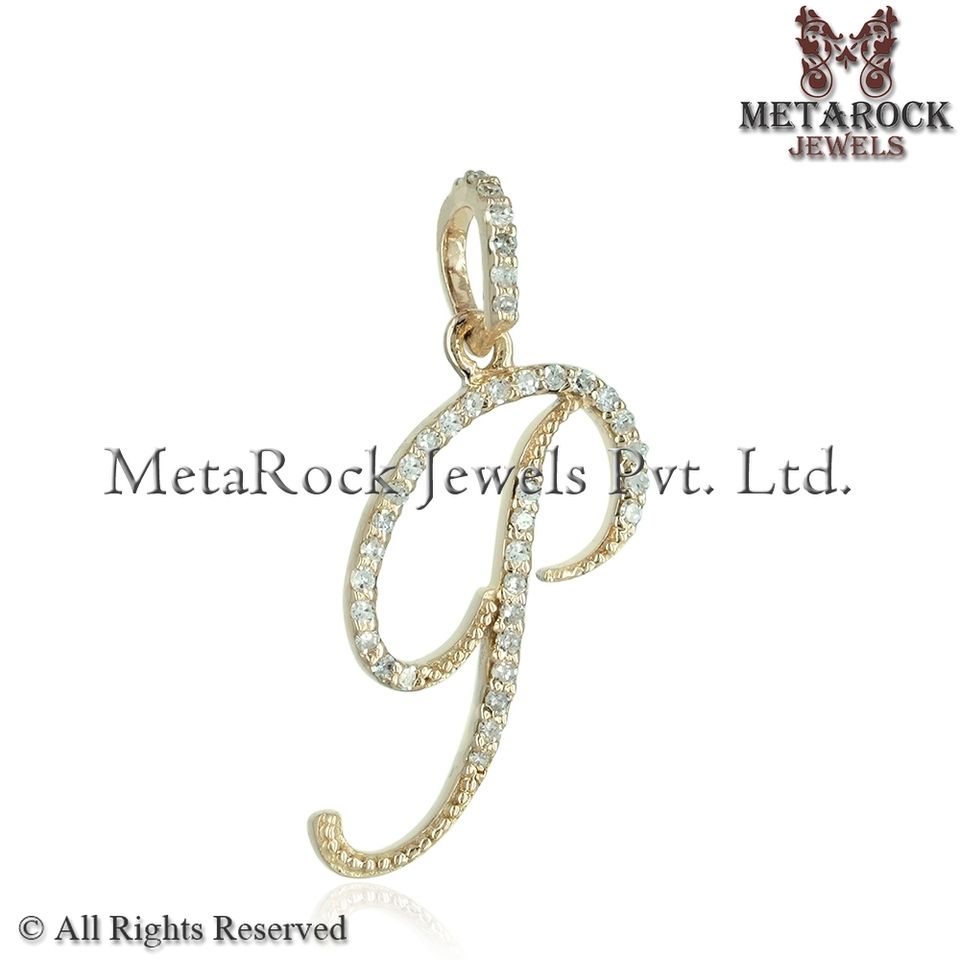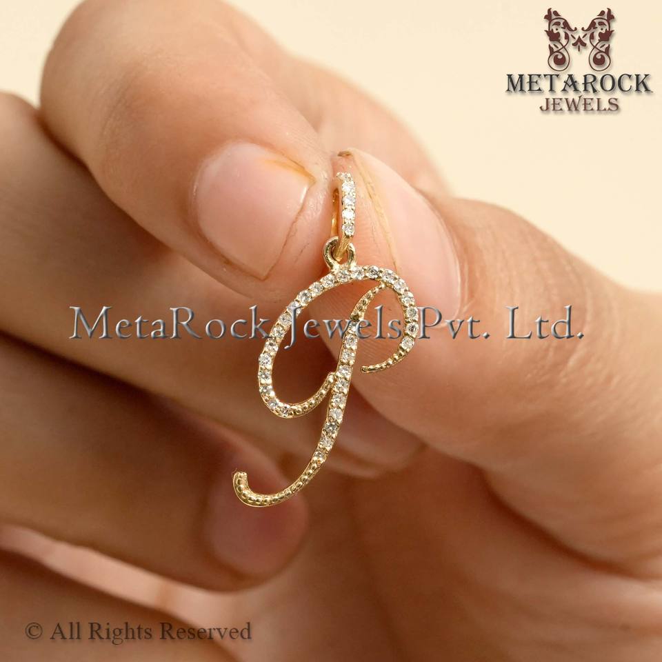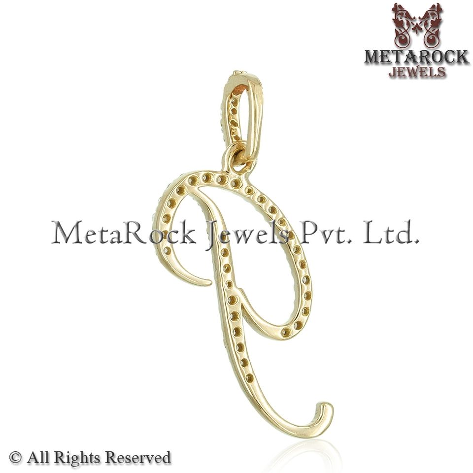 Pendentif Lettre Initiale Cursive en Diamant Naturel, Or Jaune 14 carats, Bijoux Fins en Gros, Unisexe, Cadeau d'Anniversaire