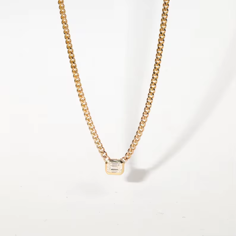 Collier chaîne à maillons en diamant de laboratoire naturel, or massif 14K 18K, diamant solitaire taille émeraude cultivé en laboratoire, bijoux fins élégants pour mariage