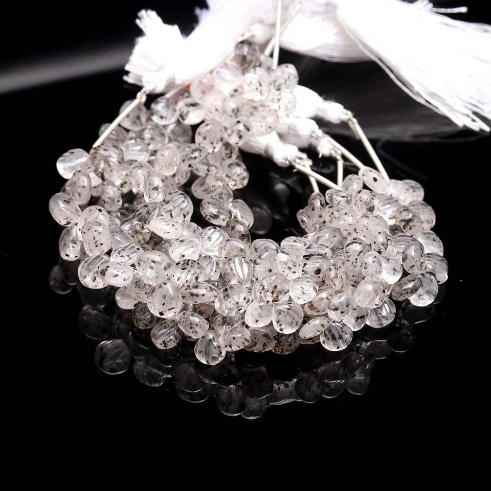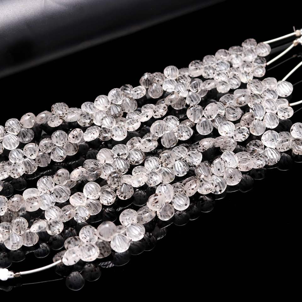 Perles de coquillages sculptées en quartz naturel, perles de pierres précieuses sculptées à la main, perles de quartz à points, perles de pierres précieuses percées sur le côté pour la fabrication de bijoux