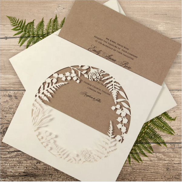 Article:Emballage de carte d'invitation découpé au laser fait à la main