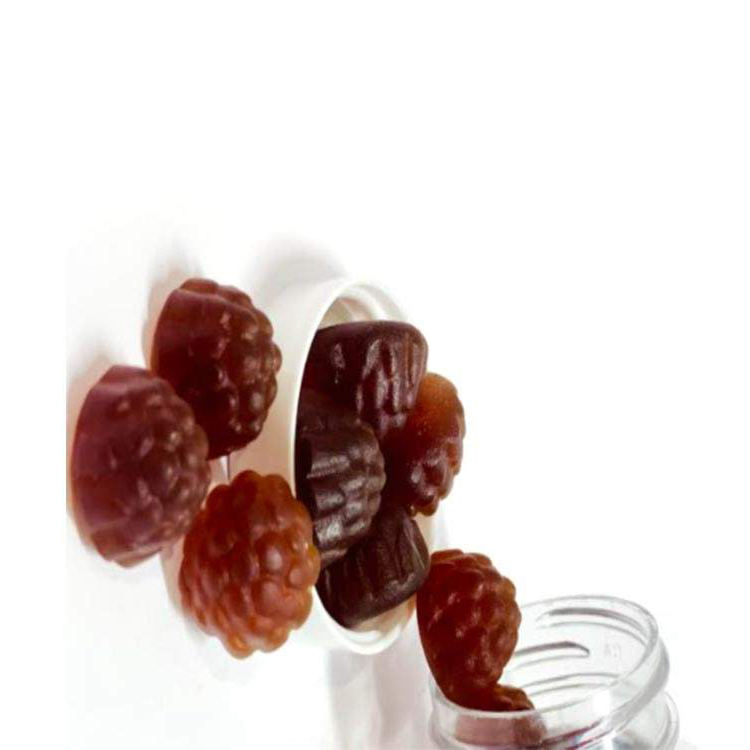 Appearance:Light Brown gummies. Orange flavor. Berry shape