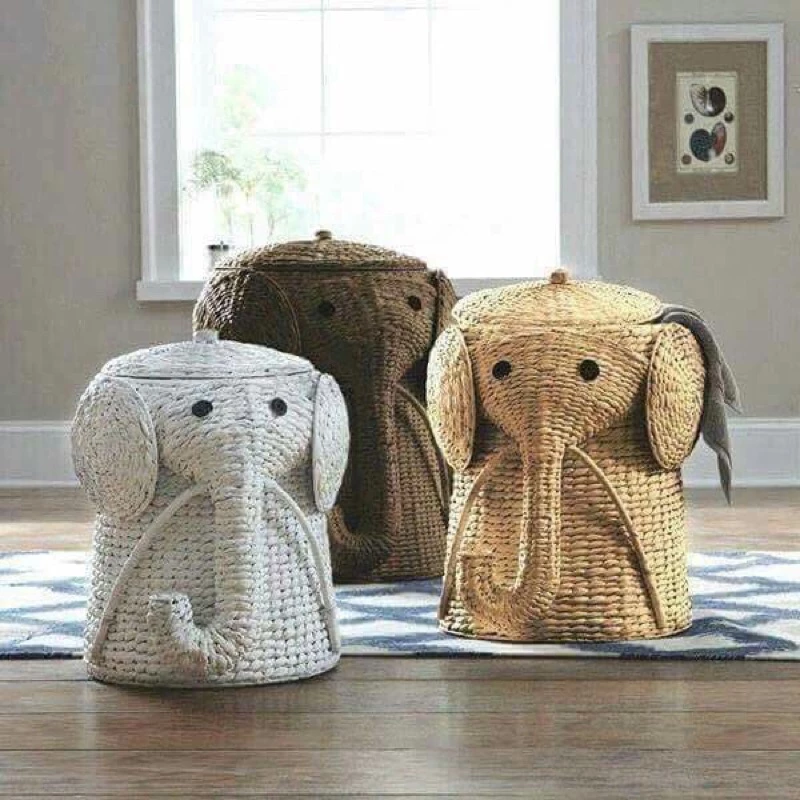 Natural Elephant Basket in Water Hyacinth - Handcrafted, Cute Storage Piece for Cozy, Kid-Friendly Interiors