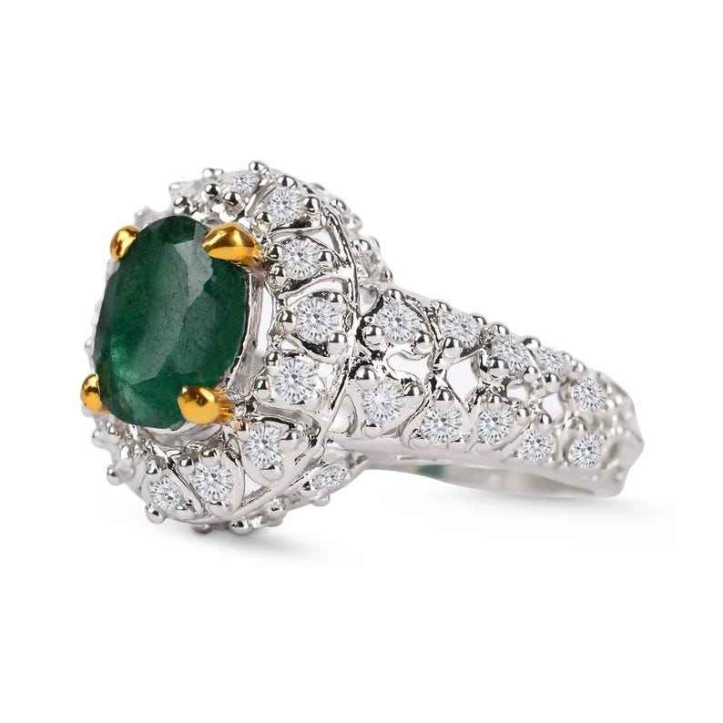 Natural Zambian Emerald 14K Gold Ring Elegant Luxury Jewelry Classic