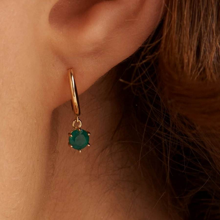 Nom du produit:Émeraude naturelle ronde Dangle Drop Huggies Boucle d'oreille