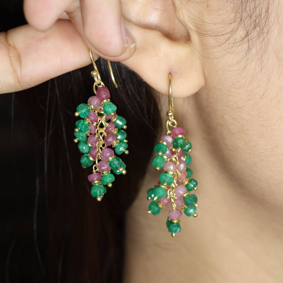 925 bijoux en argent Sterling pierre de naissance émeraude naturelle rubis levier perlé cluster boucles d'oreilles pour les femmes cadeau de mariage pour elle