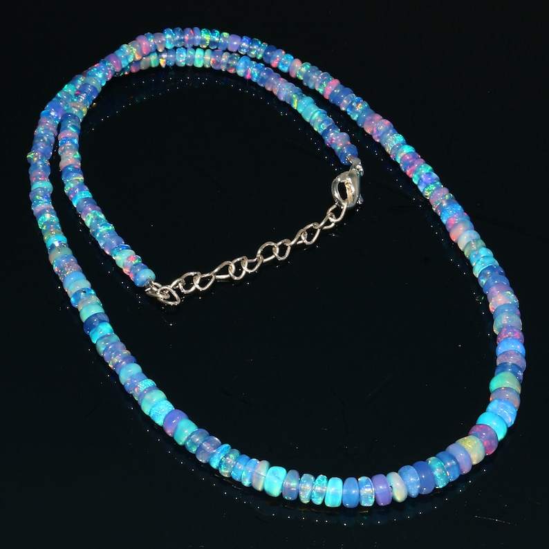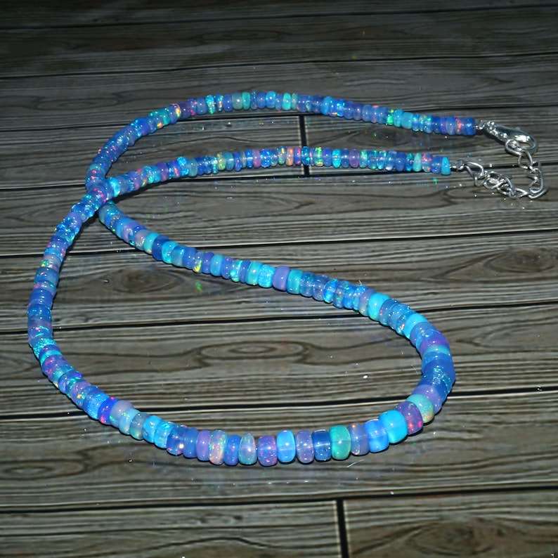 Keyword:Ethiopian Blue Fire Opal Beads Necklace 925 Silver