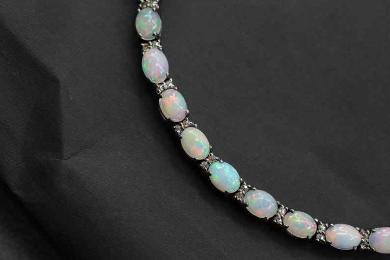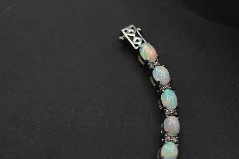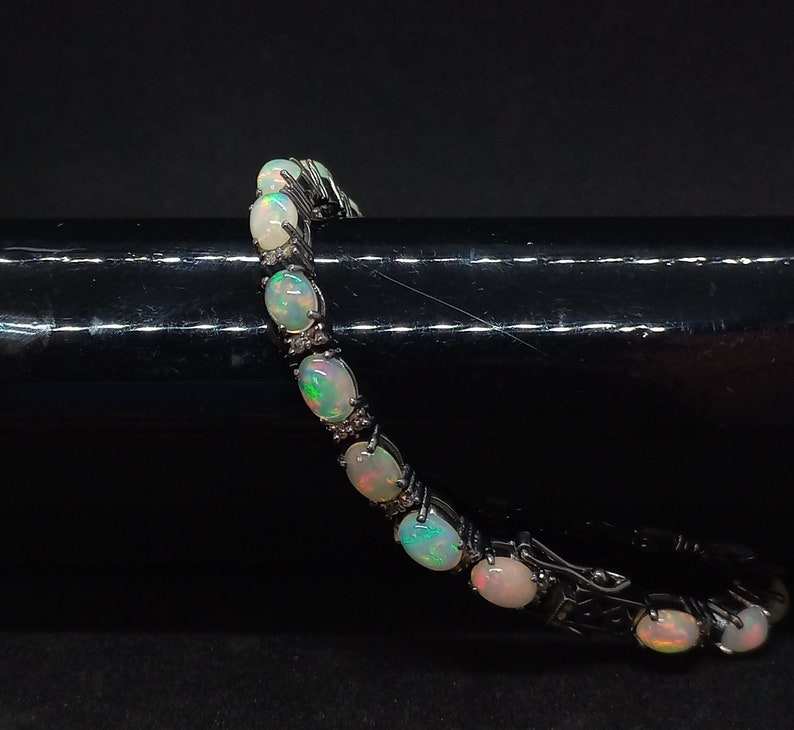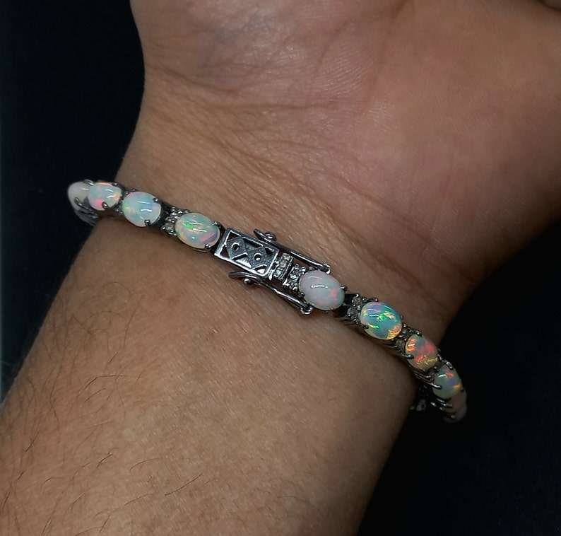 Natural Ethiopian Opal Zircon Bracelet Pave Fire Opal Tennis Bracelet Sterling Silver Wedding Anniversary Jewelry