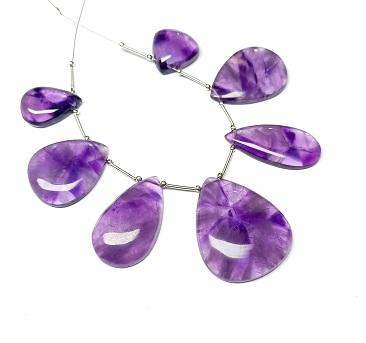 Perles de pierre d'améthyste à facettes naturelles en forme de poire lisse 5 pouces perles en vrac sur brin pour l'utilisation de bijoux