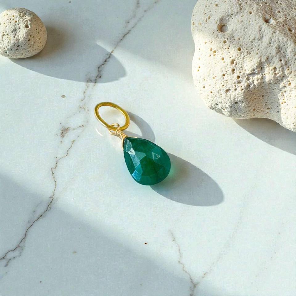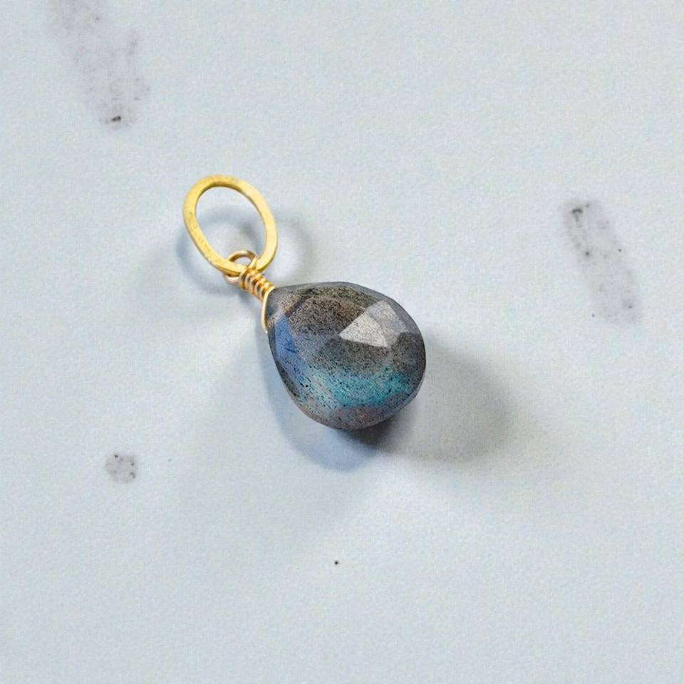Pendentif en labradorite naturelle à facettes en forme de poire, plaqué or 14 carats, fil d'argent enroulé, pierre précieuse verte, bijou religieux porte-bonheur