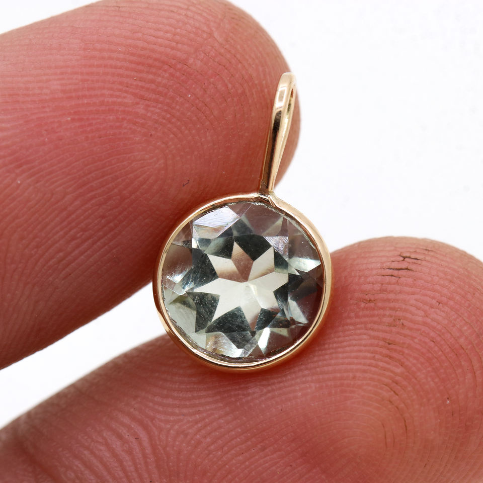 Pendentif en or jaune massif 14 carats pour femmes, améthyste verte à facettes naturelles, cadeau GIA, pendentifs fins en or, vente en gros