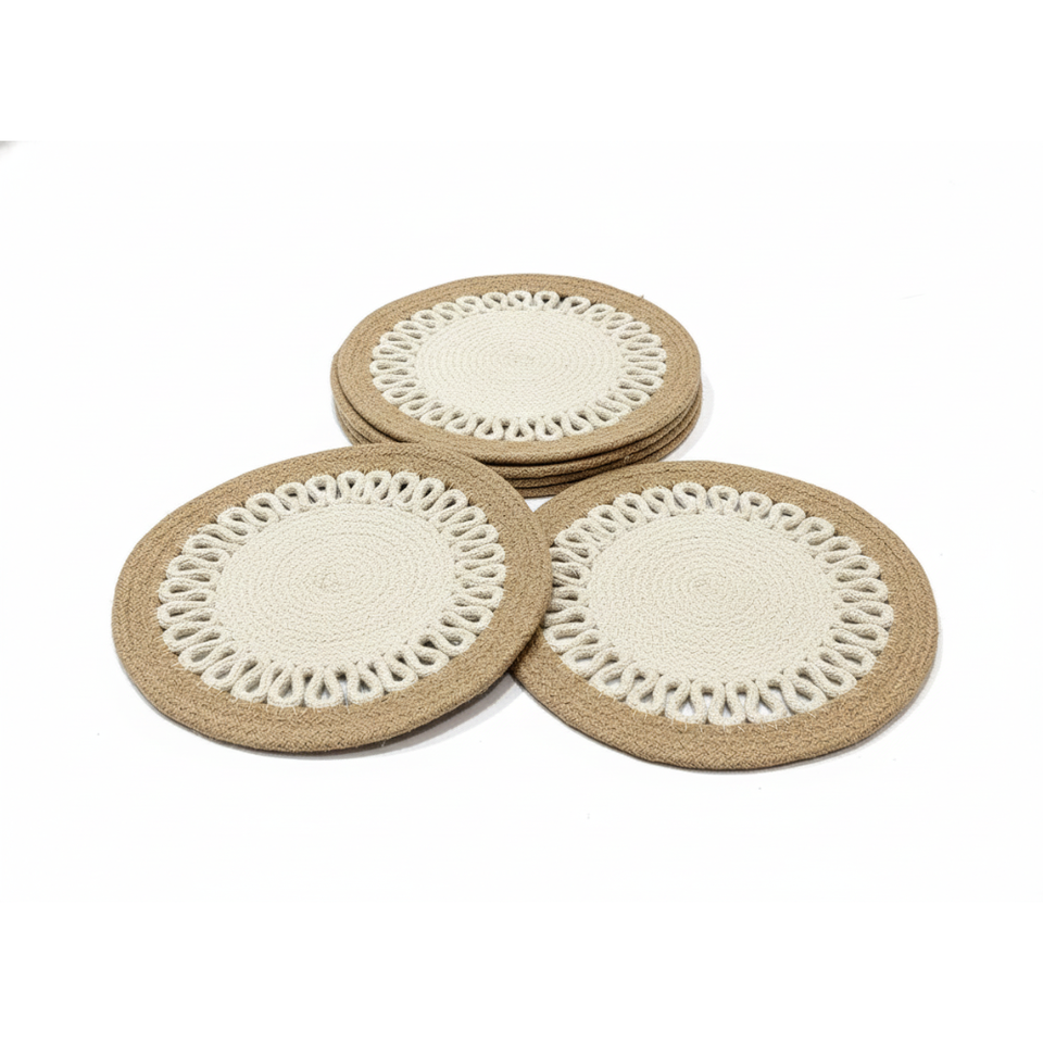 Natural Fiber Jute Placemat 350mm Handmade Contemporary Dining Mat Handcrafted Indian Decor Eco Friendly Non-Slip Table Styling